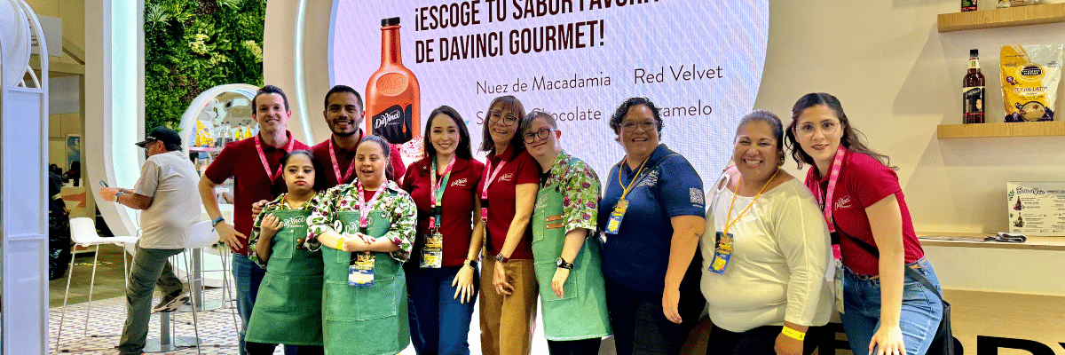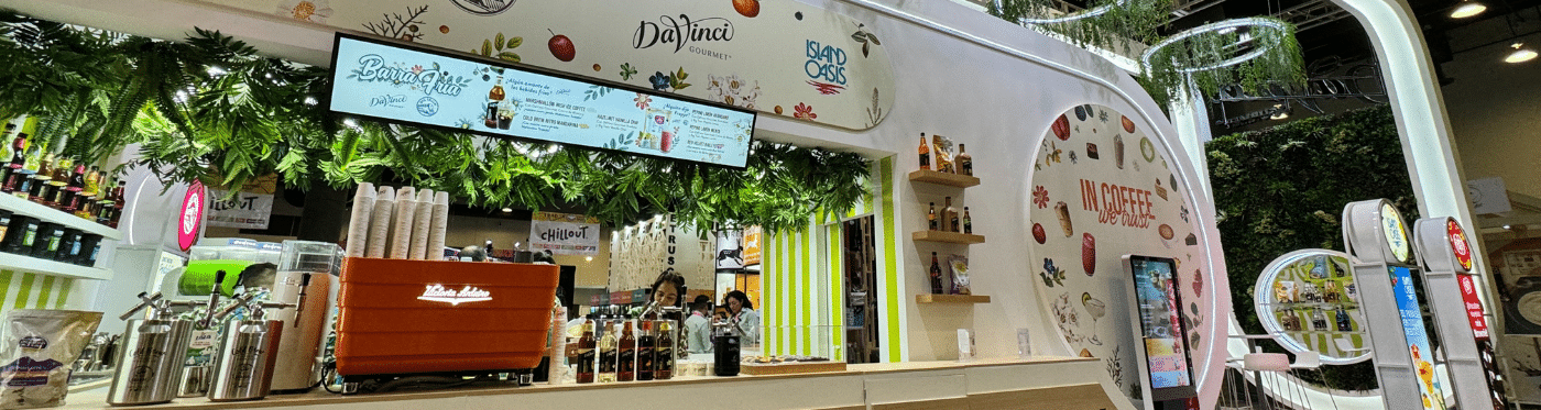 Uno de los puntos más instagrameables del stand, sin duda, fue el logo de DaVinci Gourmet, rodeado de naturaleza, que se convirtió en el spot perfecto para selfies y fotos grupales. La belleza del diseño, junto con la interacción del público, hicieron de nuestro stand uno de los más comentados y admirados en Expo Café 2024.
